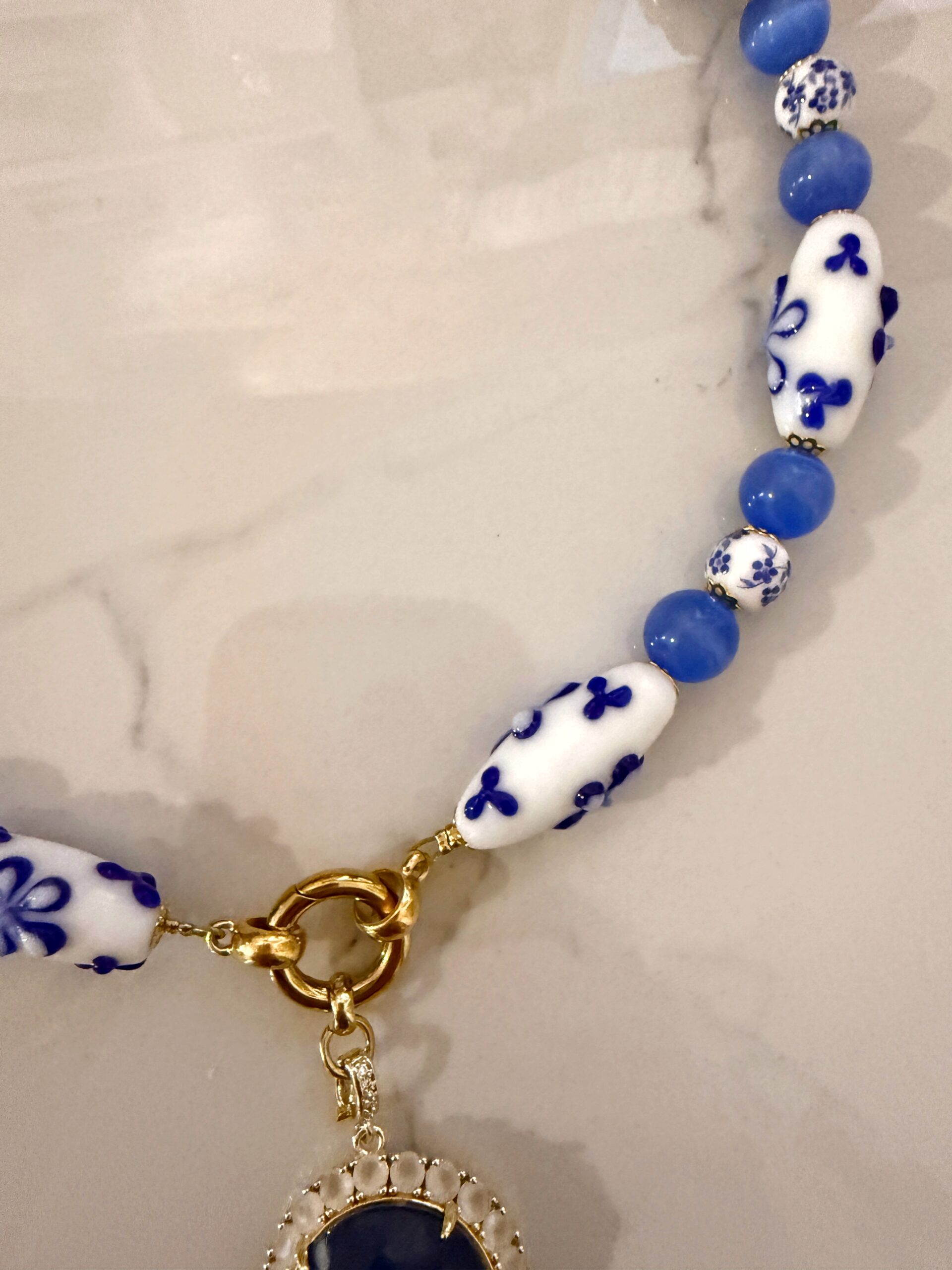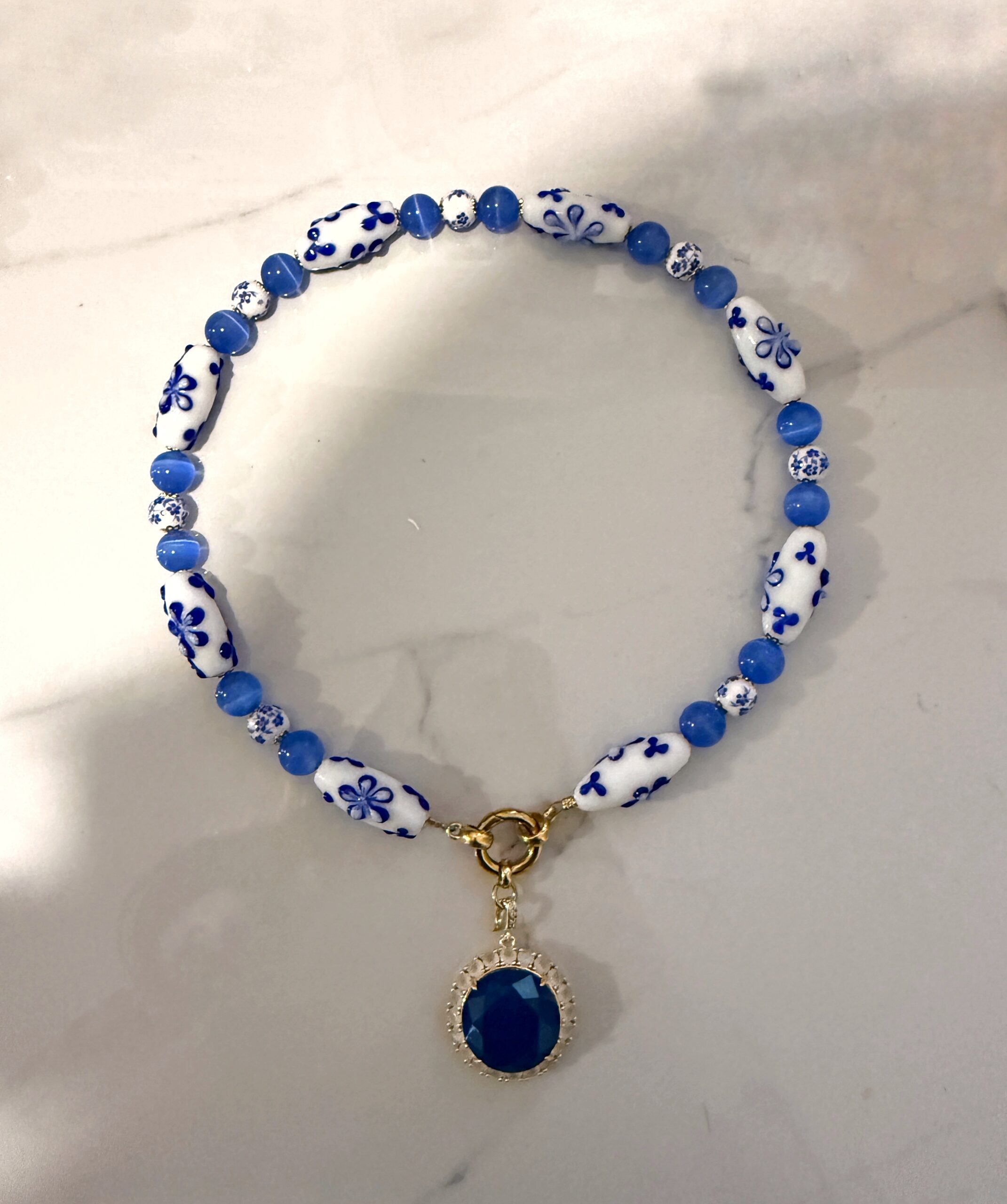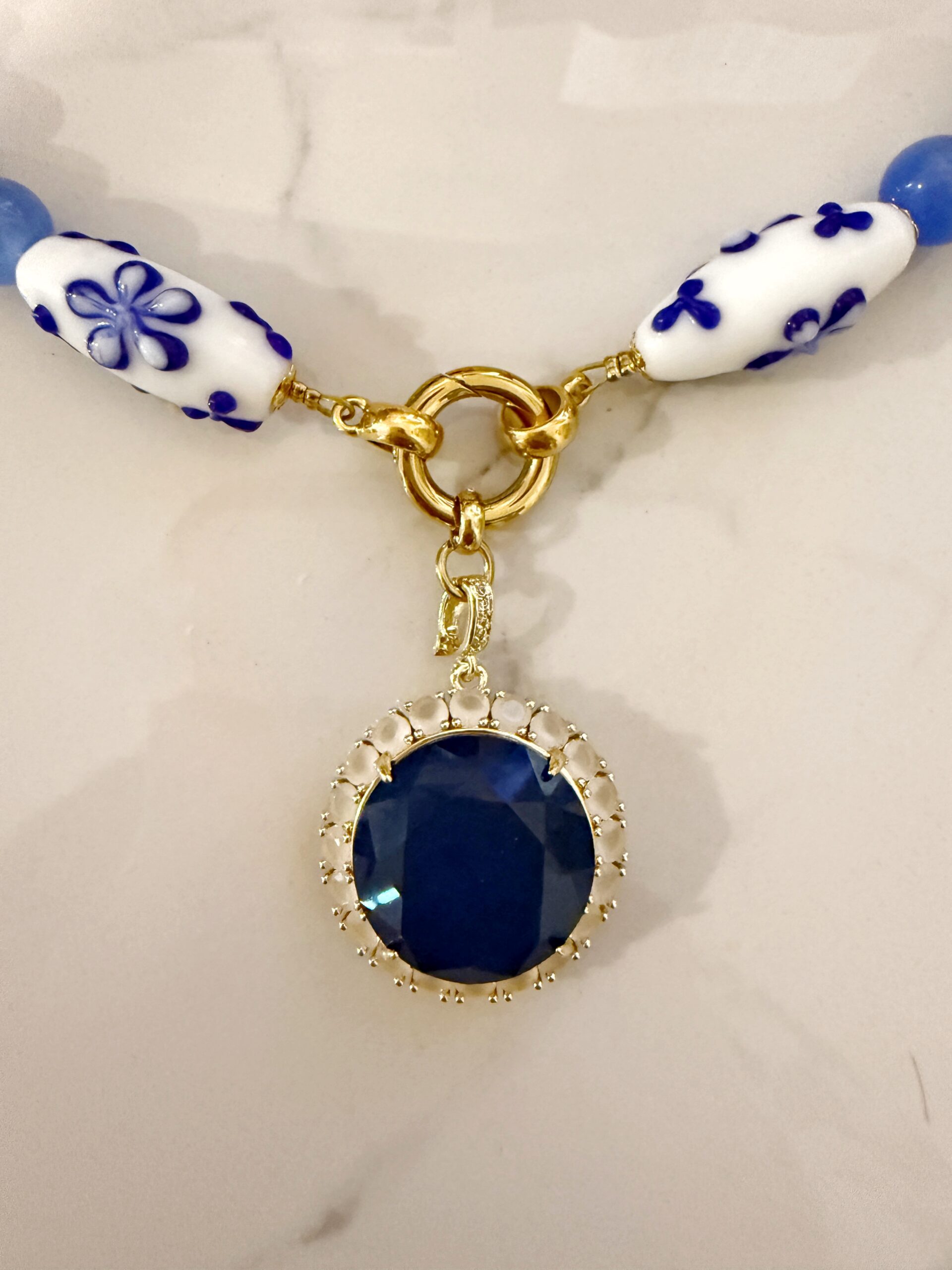 Ceramic beads necklace with gem stone beautiful pendant . pendant can be removed .