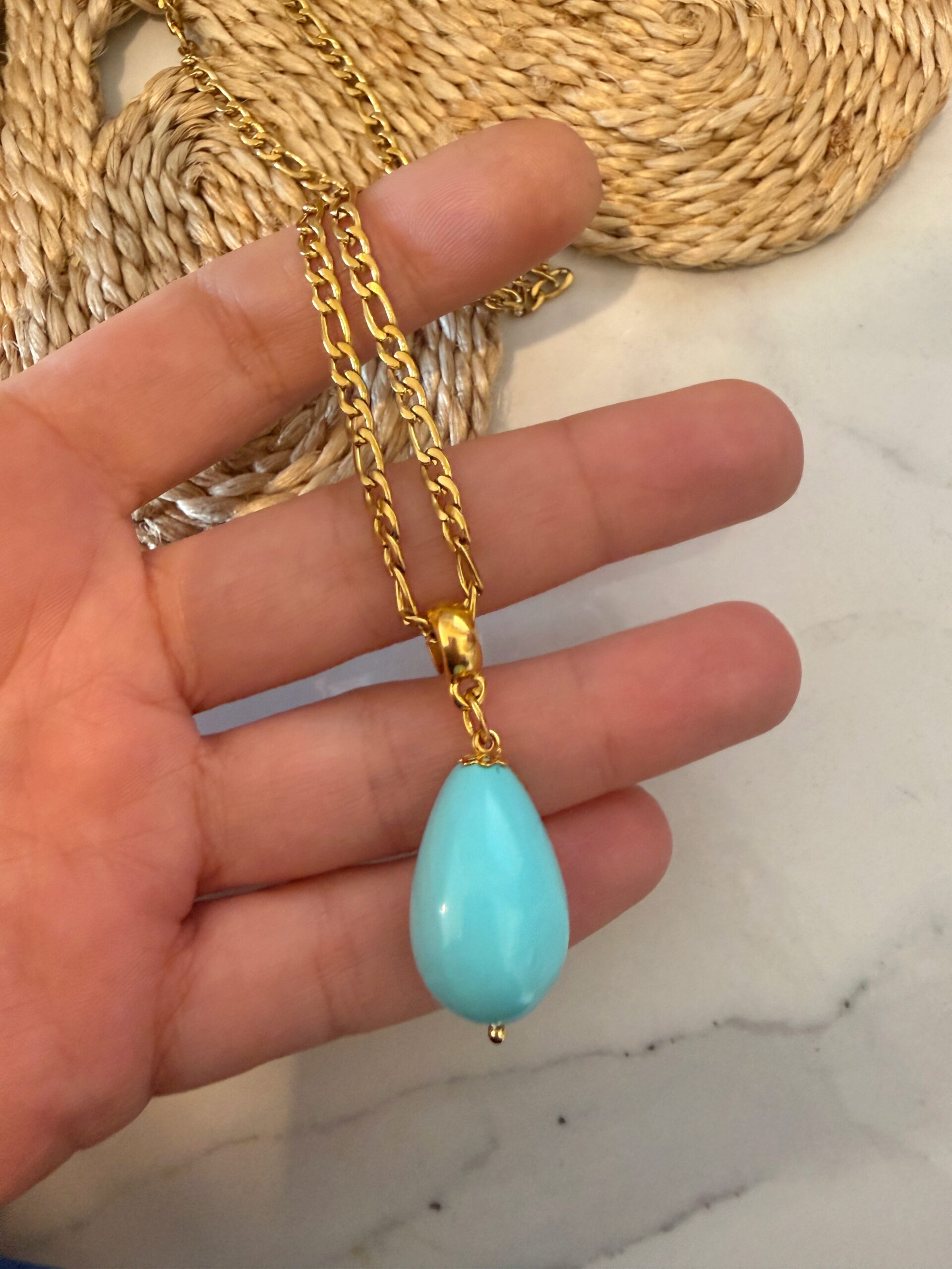turquoise necklace , gold charm necklace , jewllery brand collection , necklace for woman
