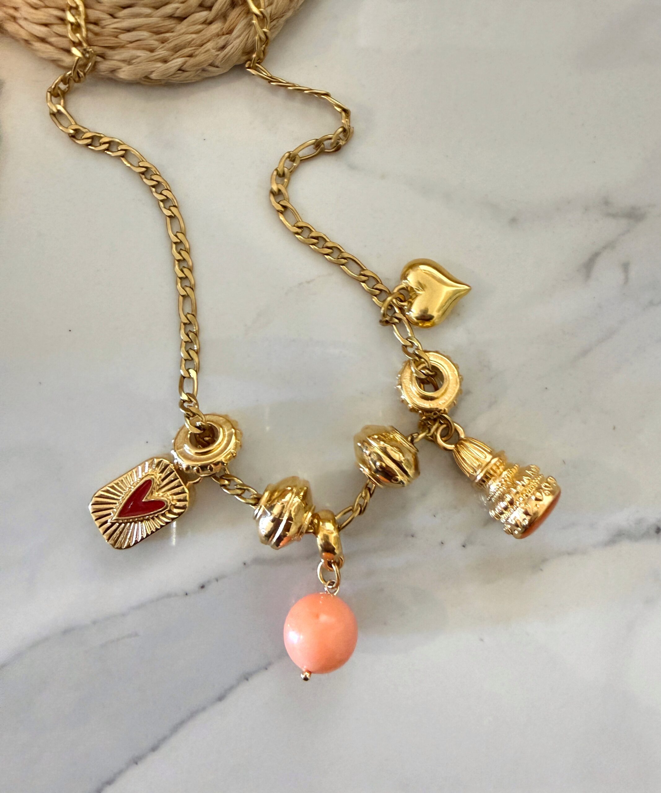 Drops of luck necklace , mixed charms peach 65.00 69.00Price range: 65.00€ through 69.00€