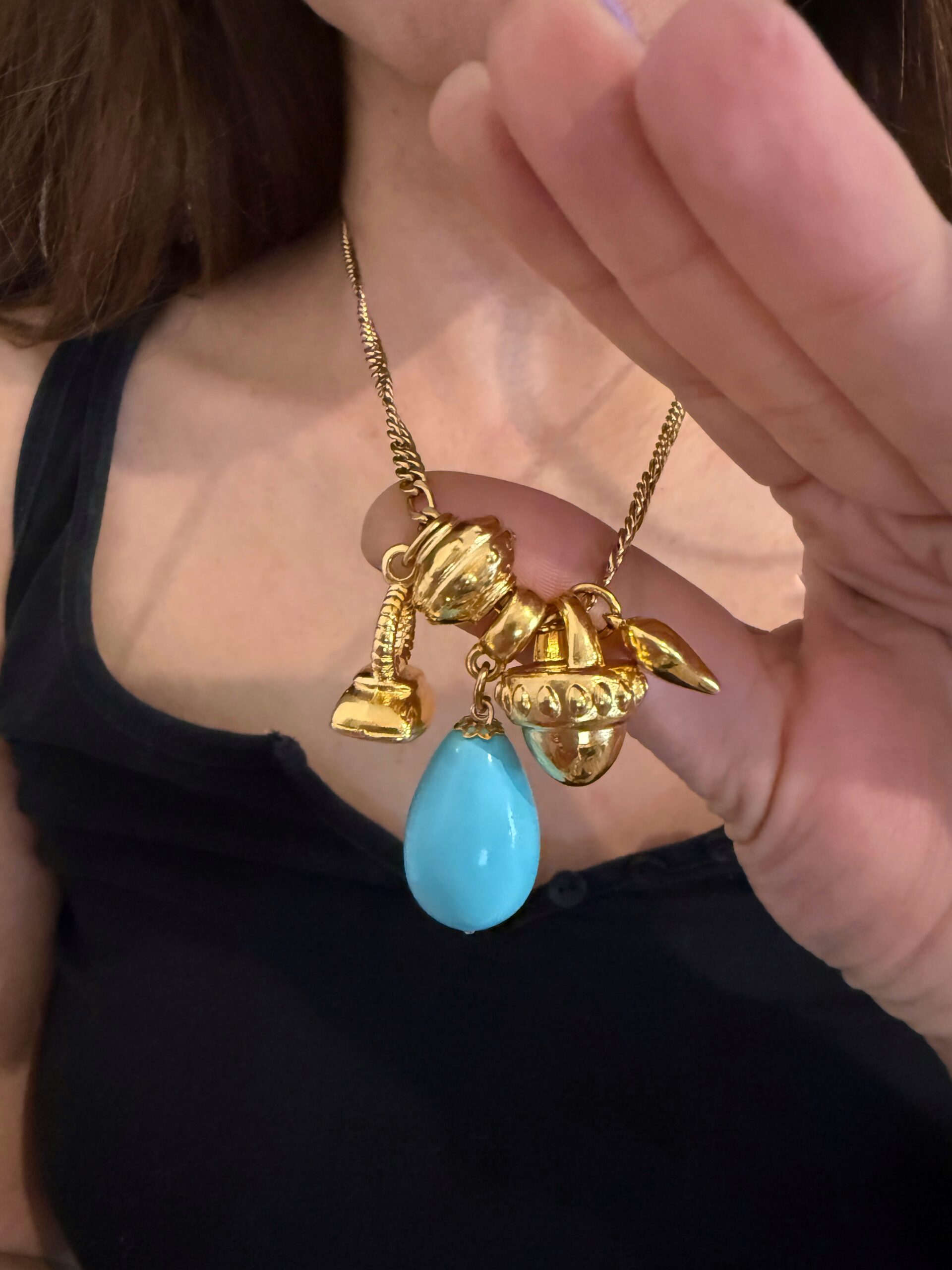 turquoise necklace , gold charm necklace , jewllery brand collection , necklace for woman