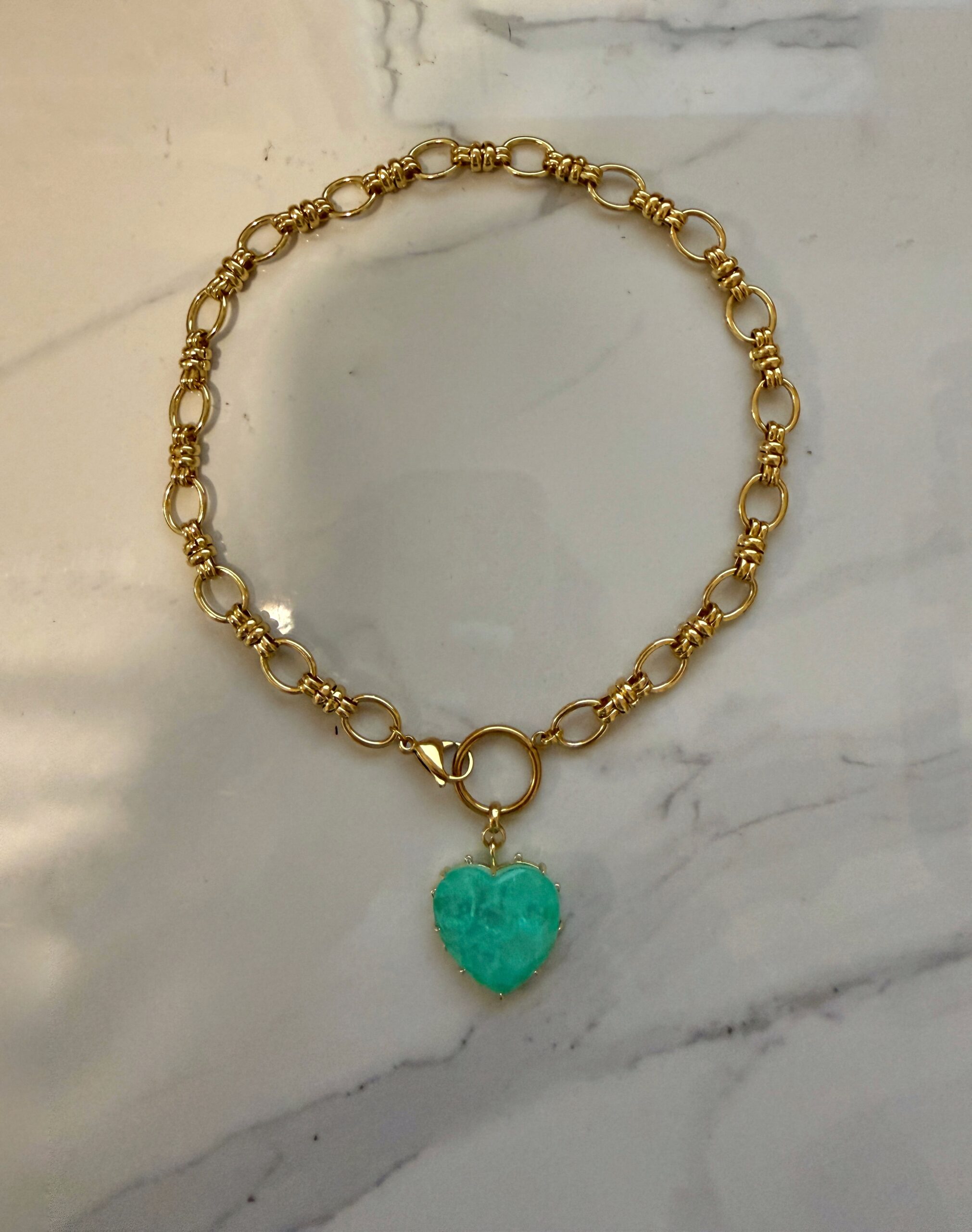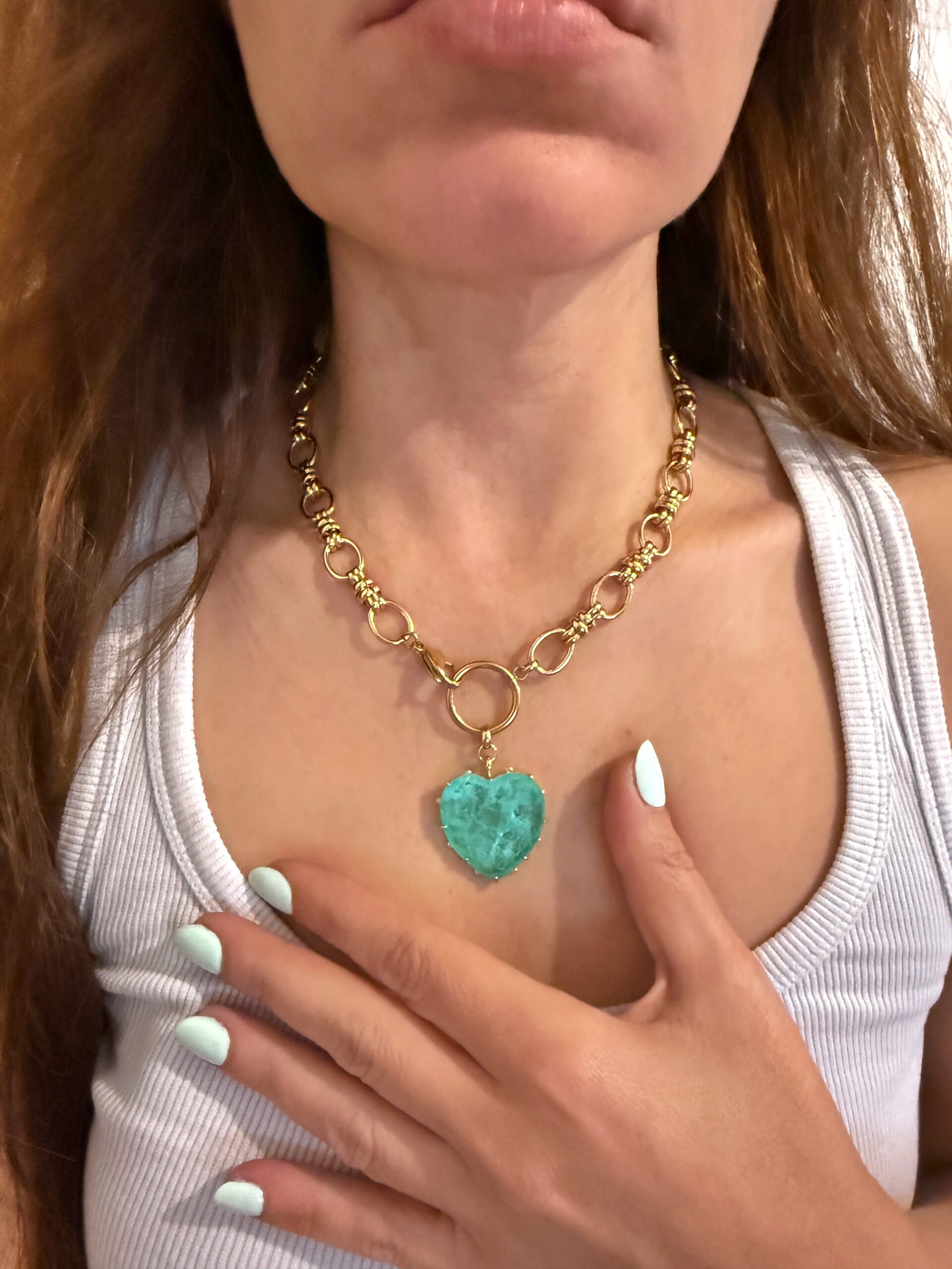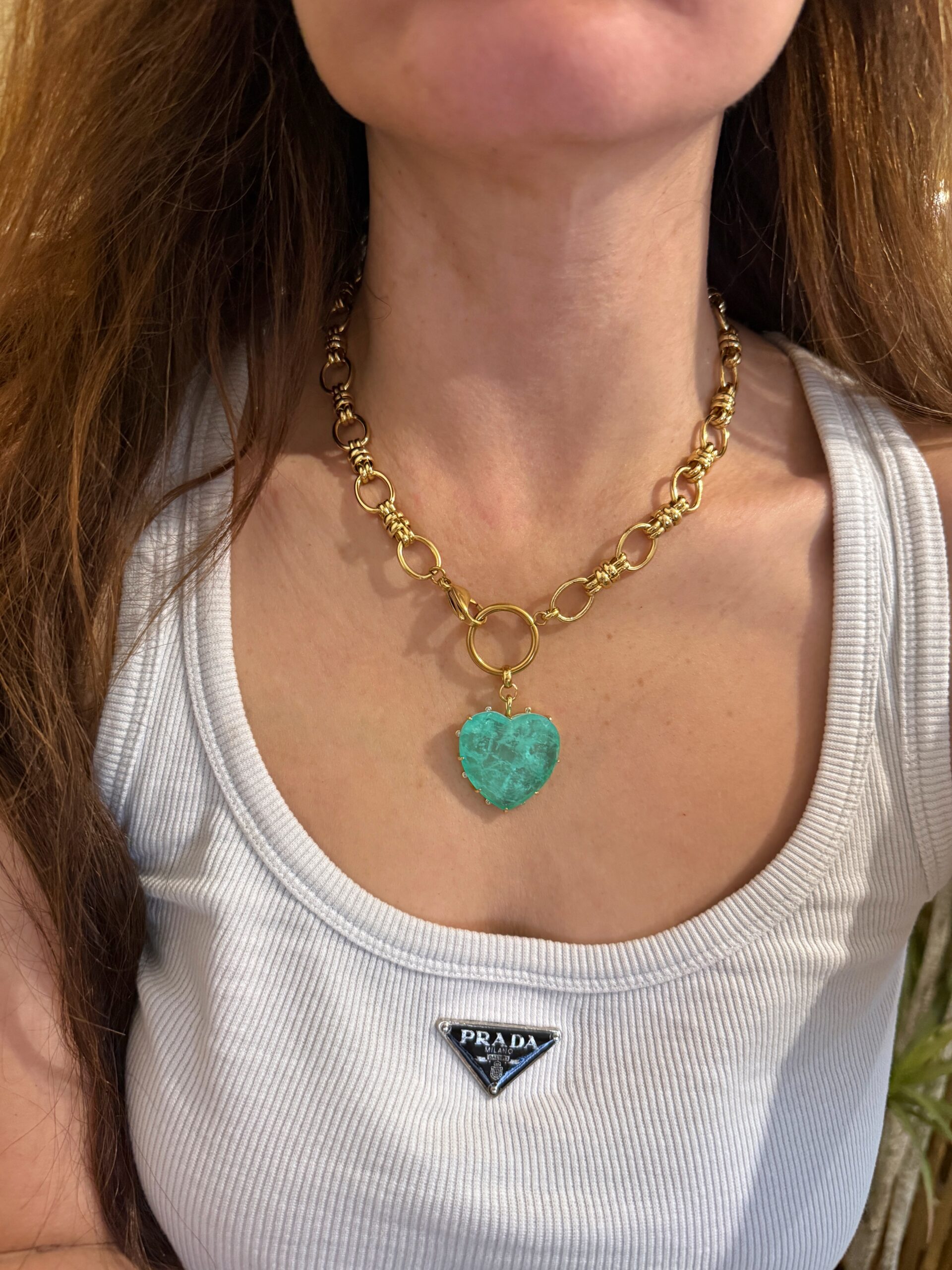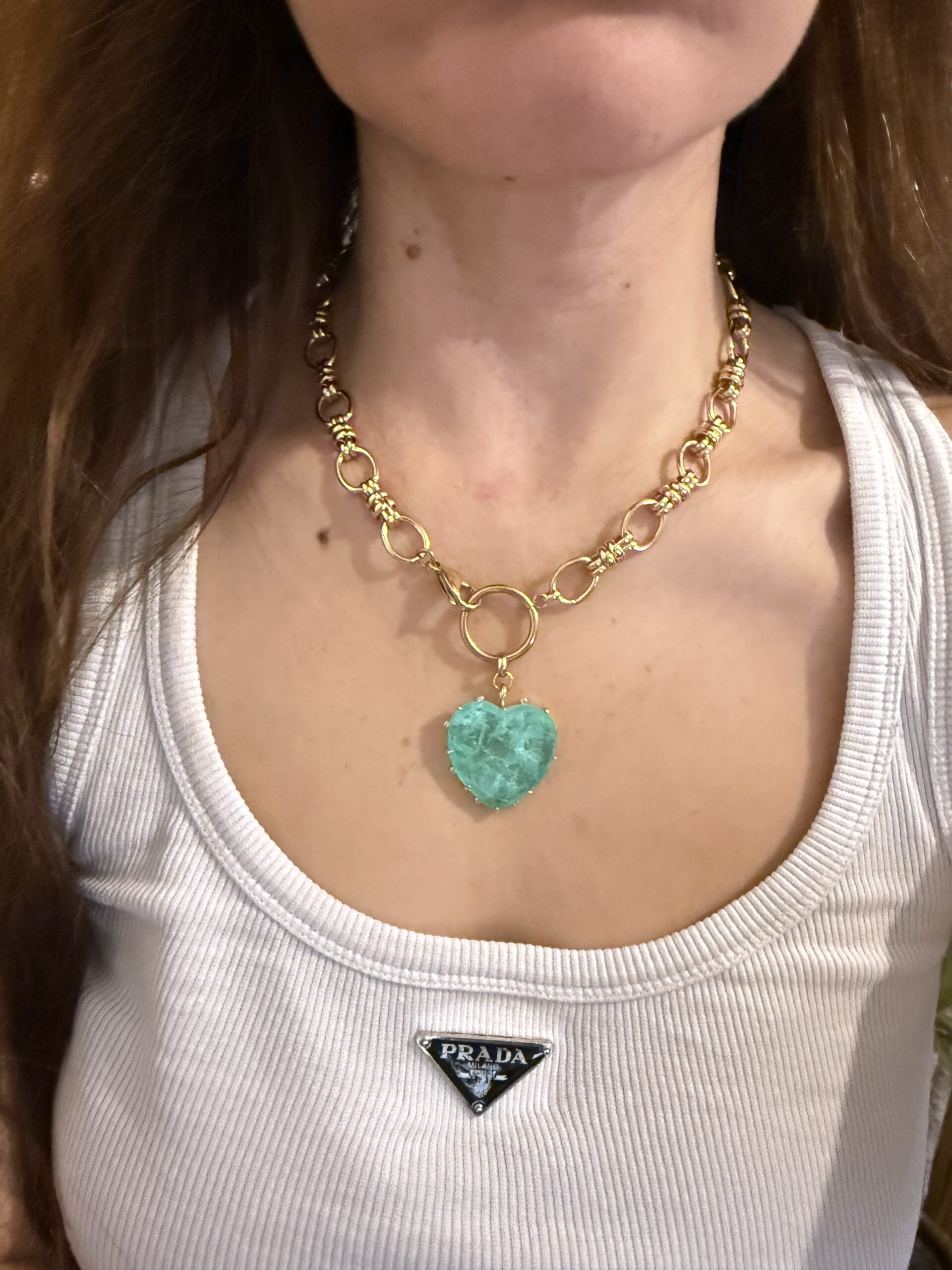 quartzs gem stone beautiful heart pendant in turquoise tone .