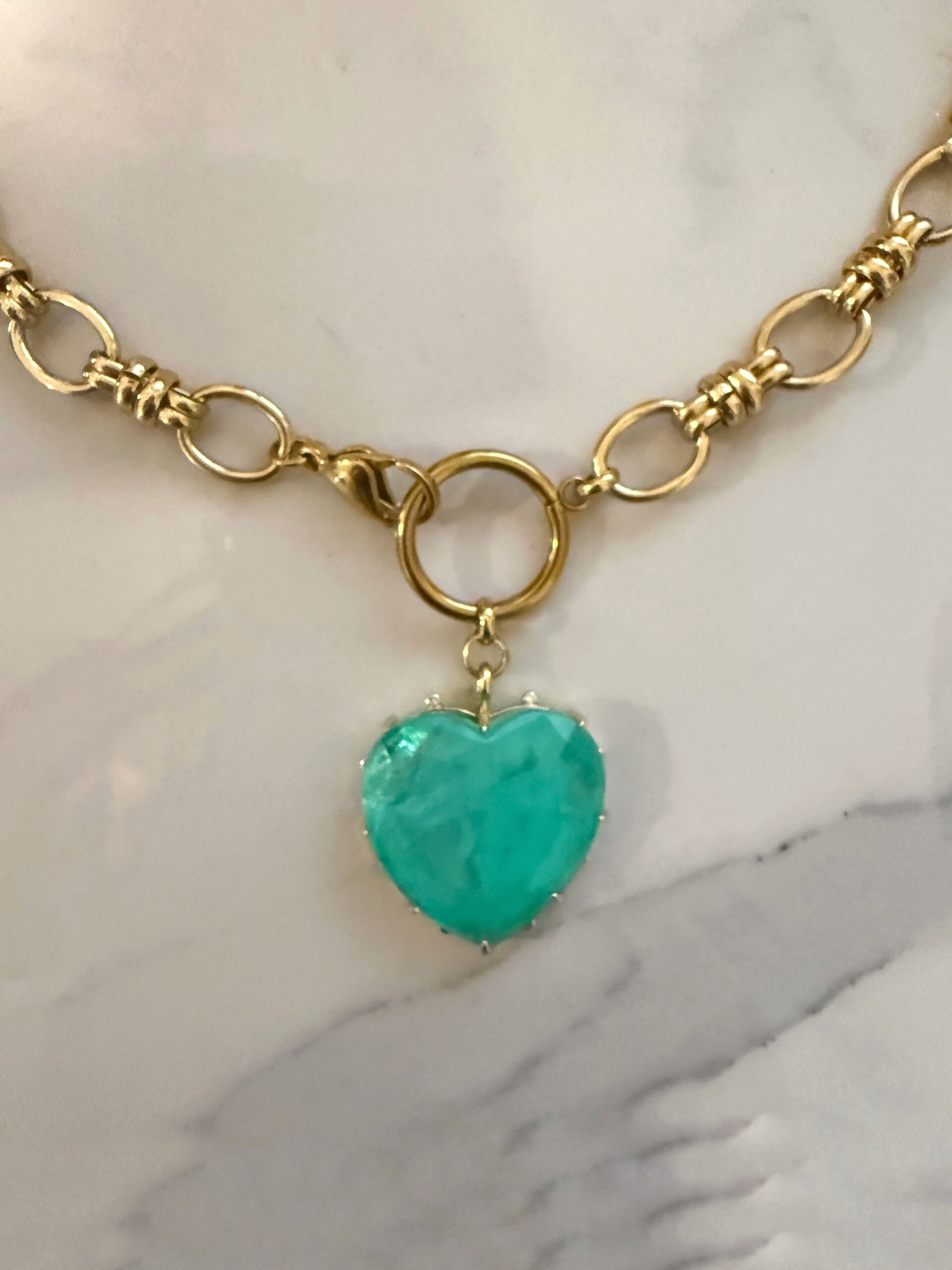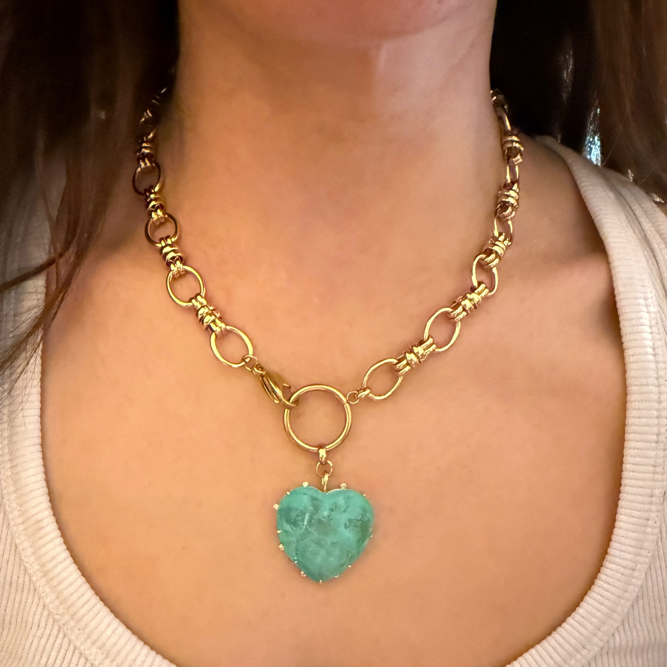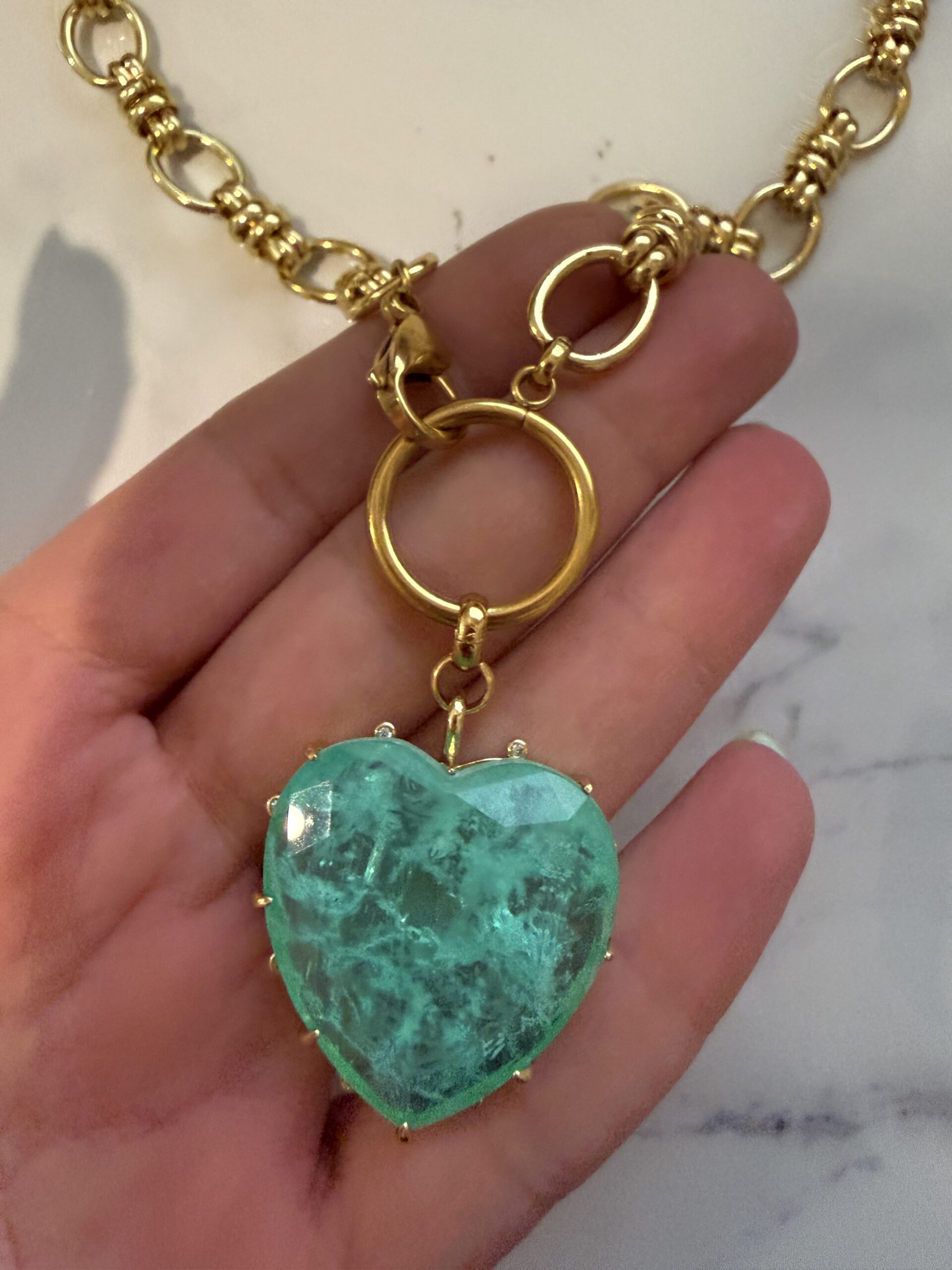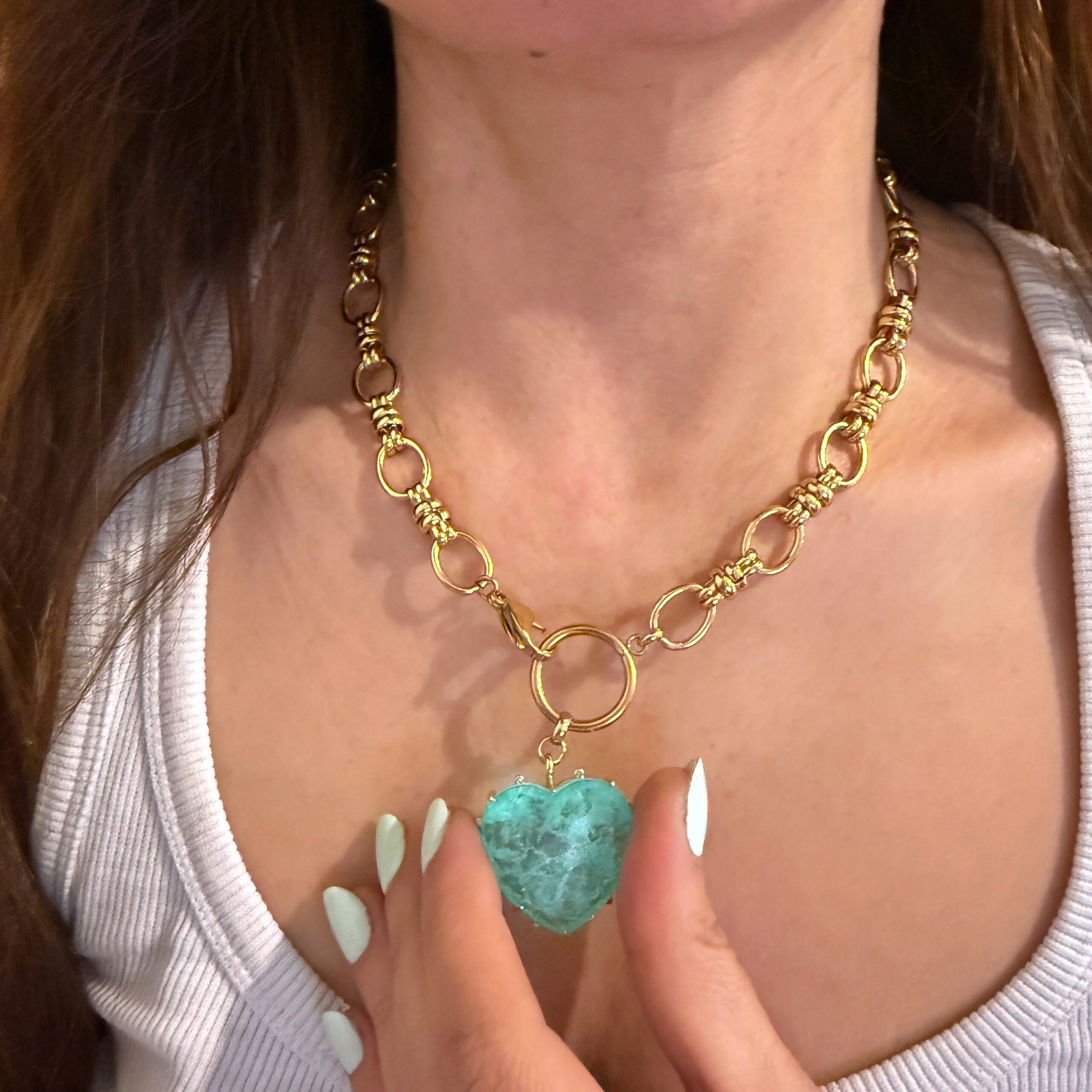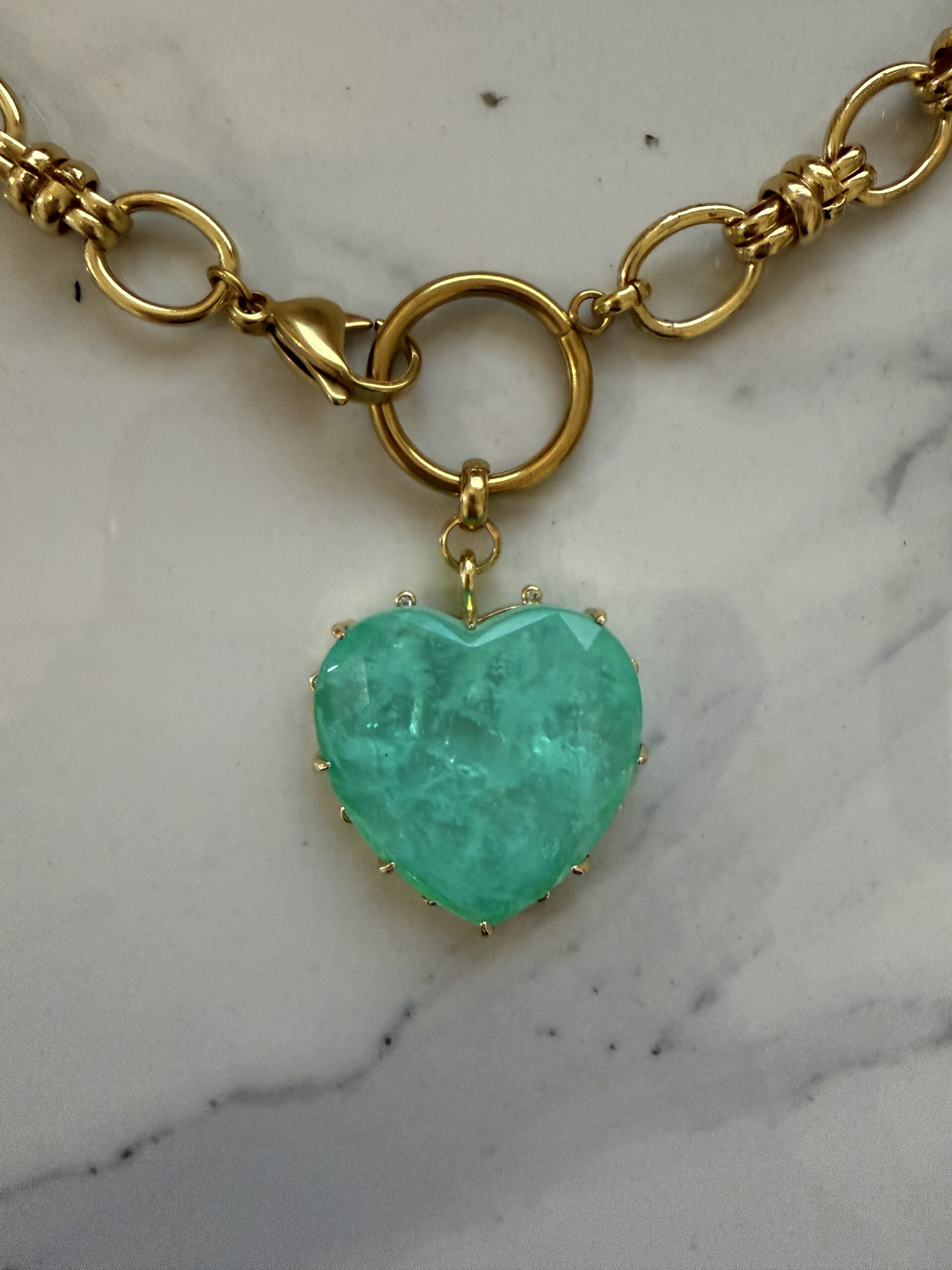 quartzs gem stone beautiful heart pendant in turquoise tone .
