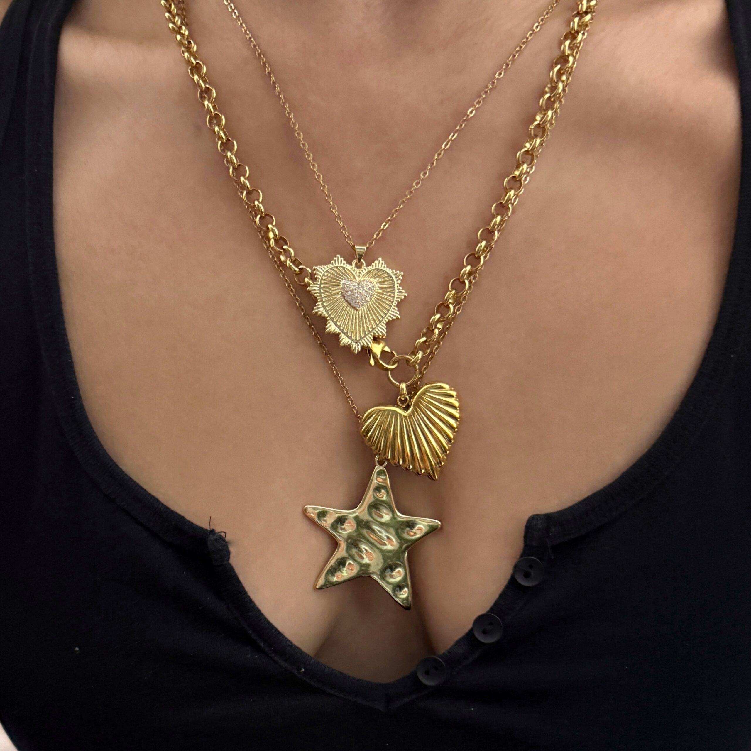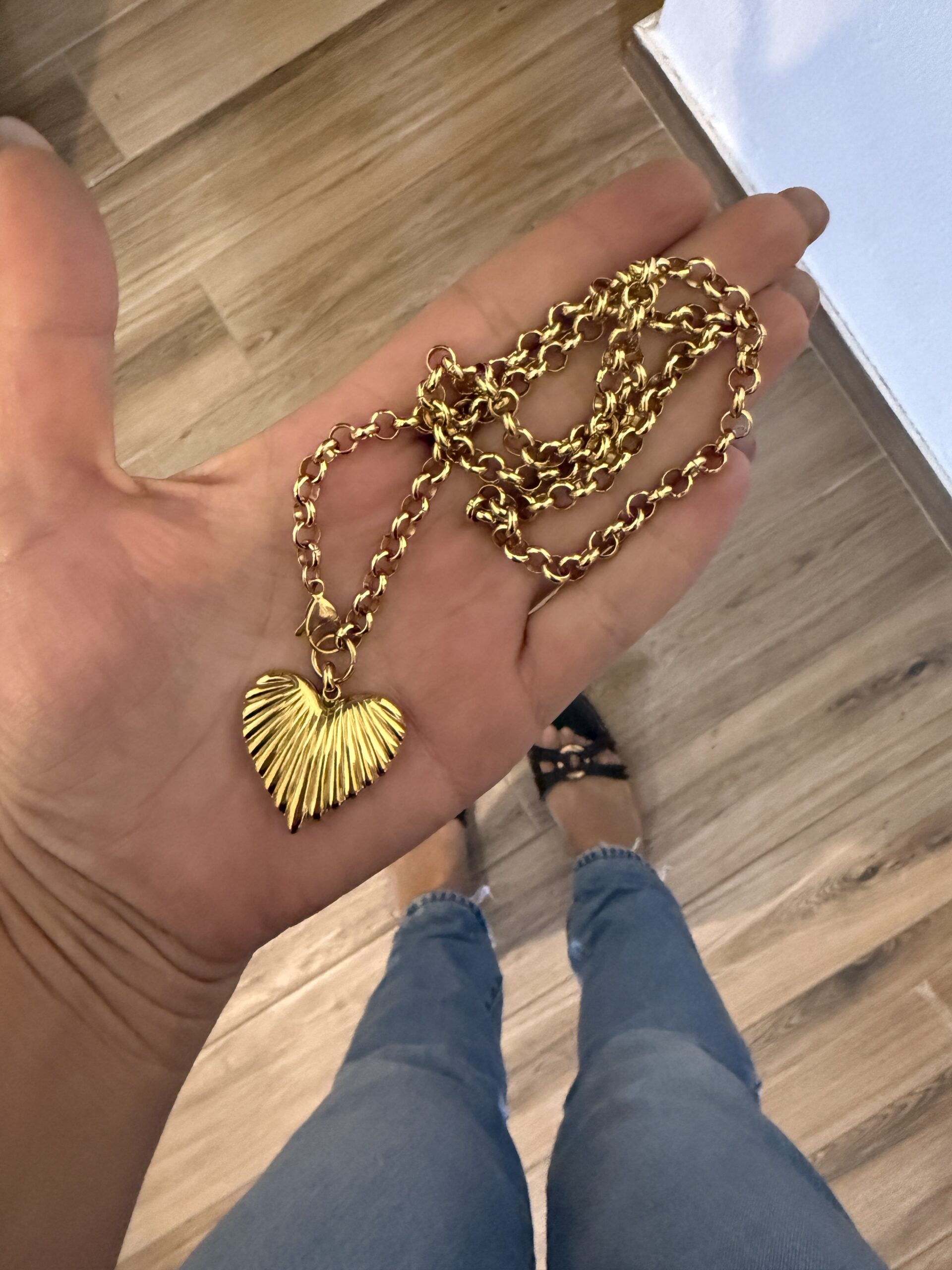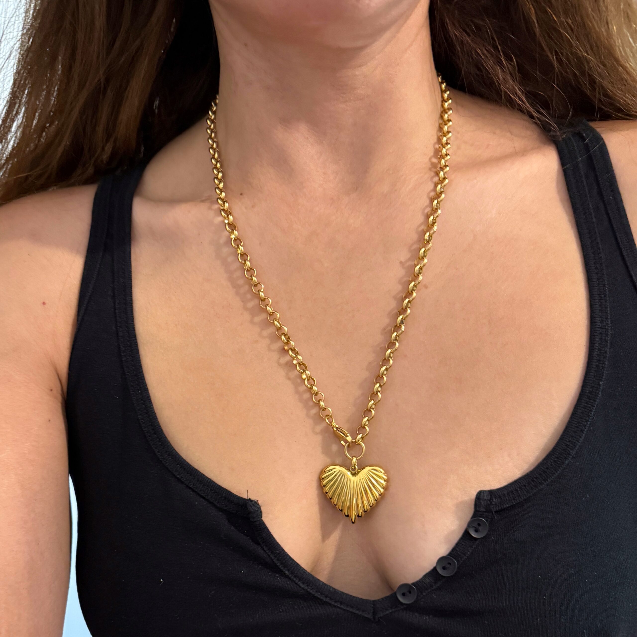 50 cm medium thickness steel chain decorated with a medium heart pendant