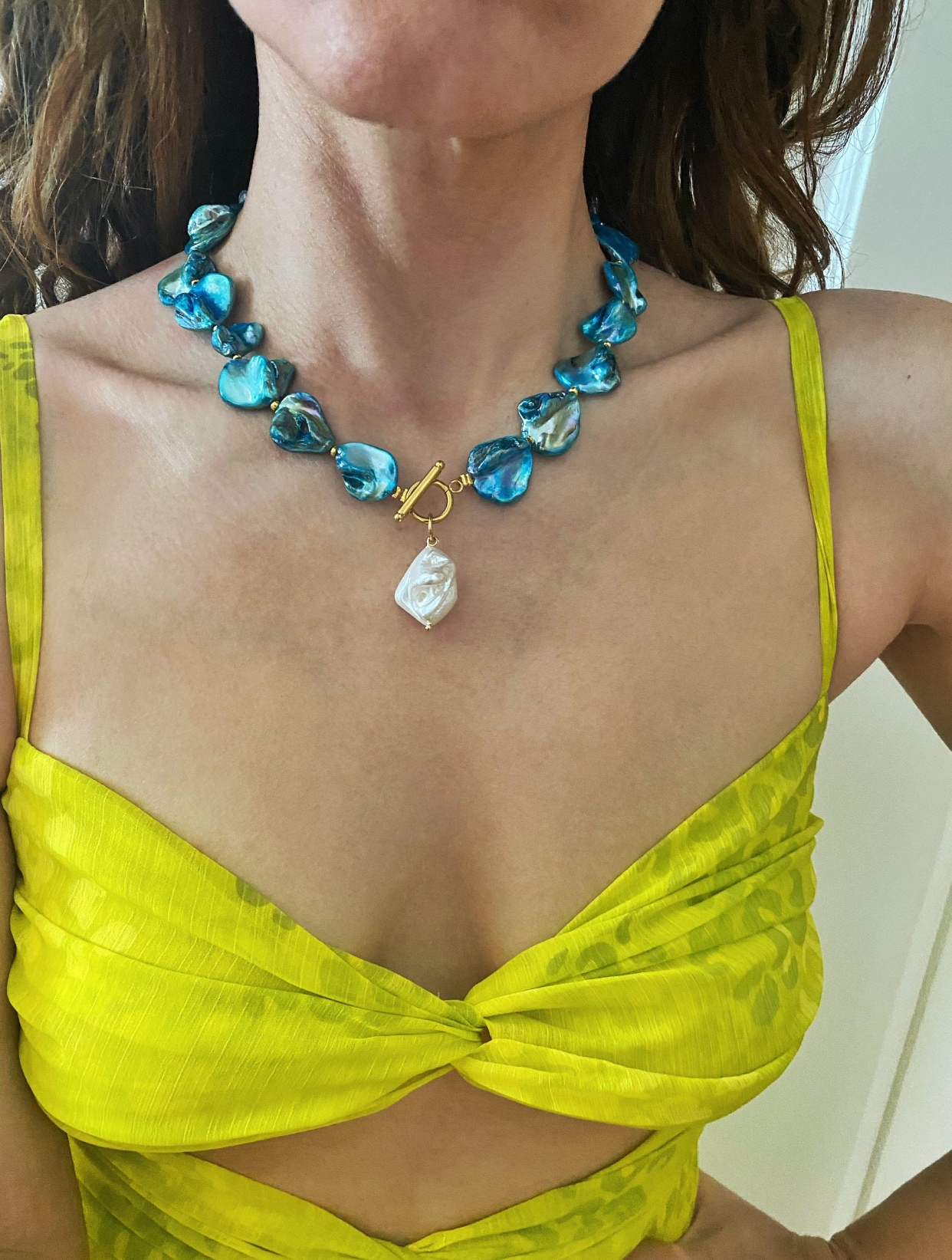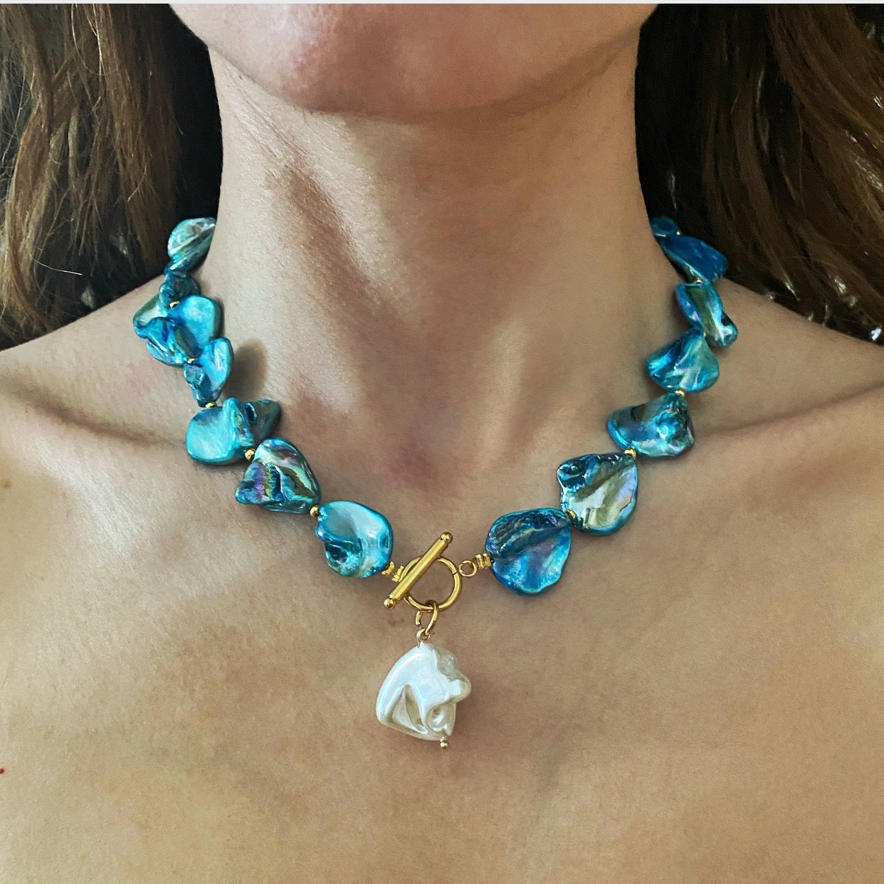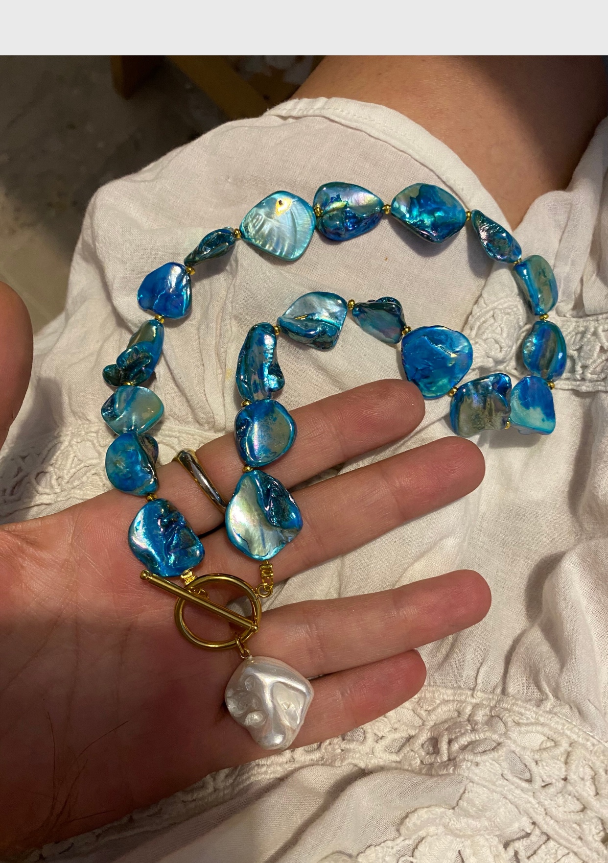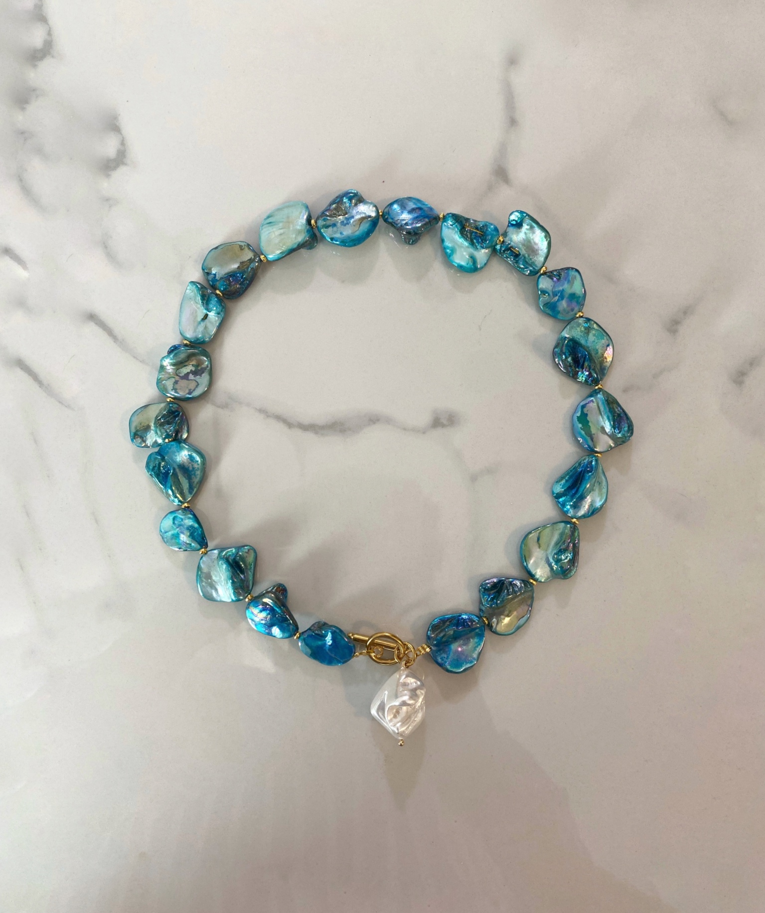 ⚜️this beautiful necklace made of painted shell beads in turquoise-blue .