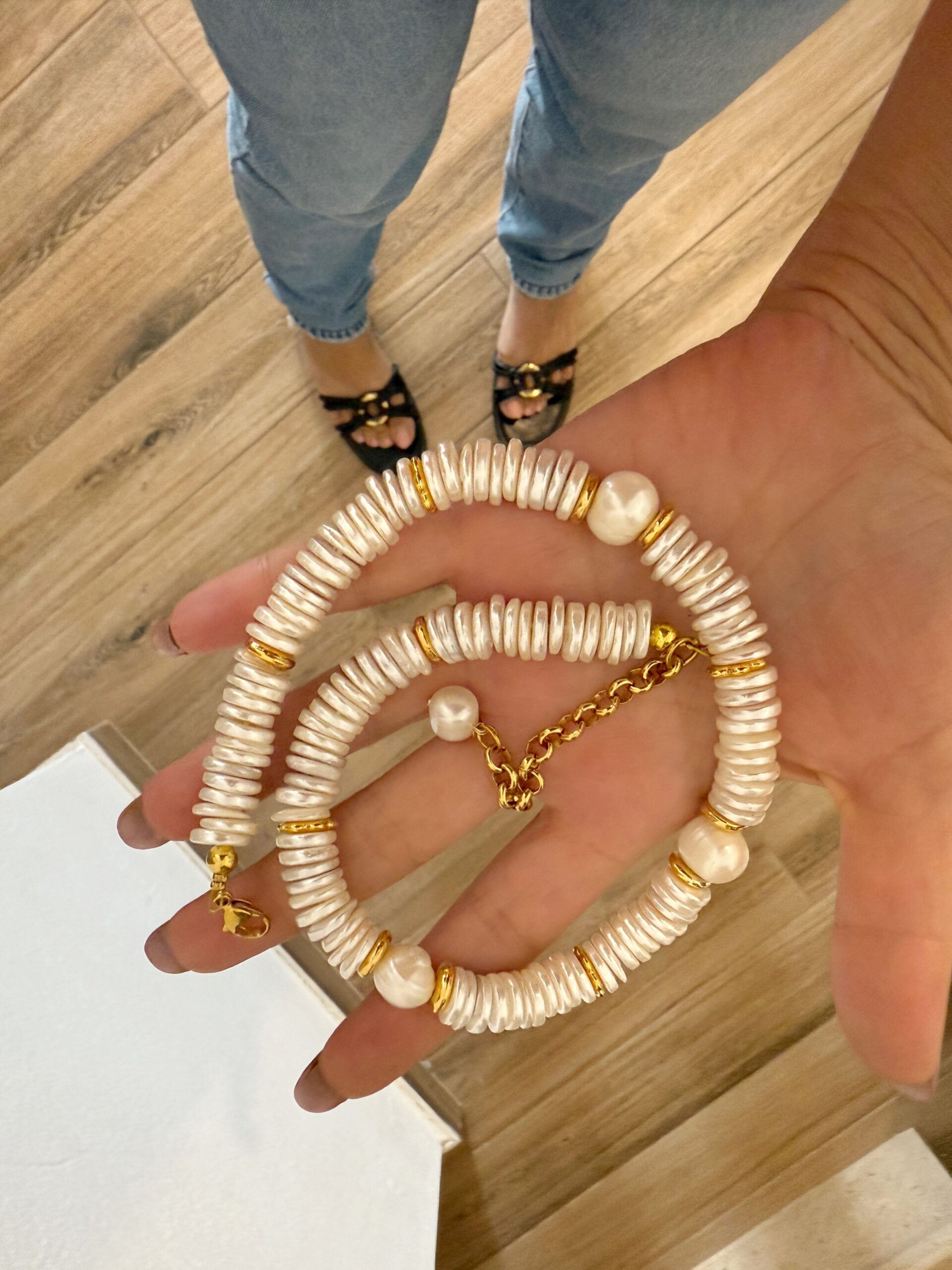 >>Nothing to pay extra upon delivery.<<.made of irregular shape beads made of mother of pearl ( part of shells )🤍choker