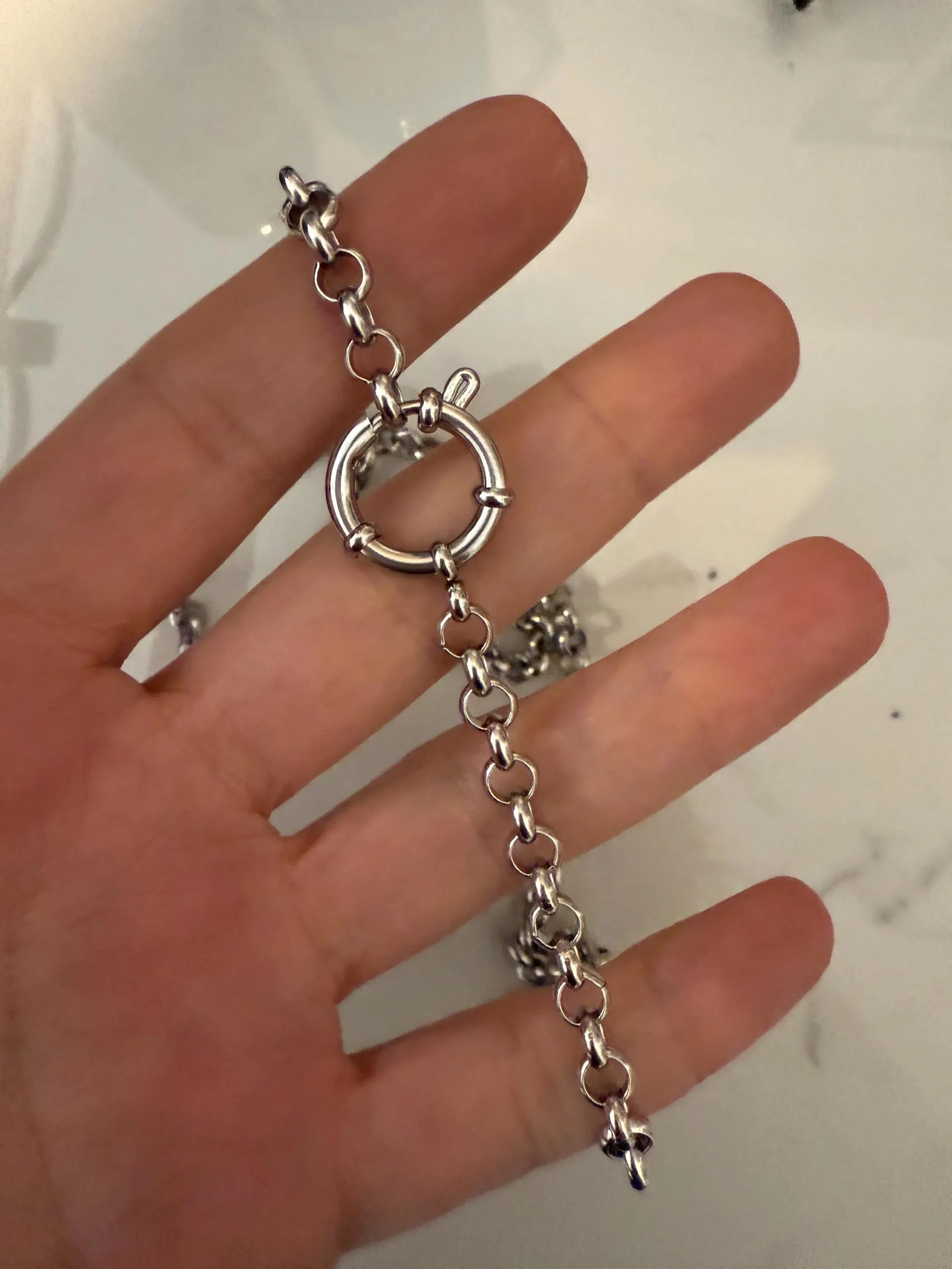 Spring Clasp chain , silver tone