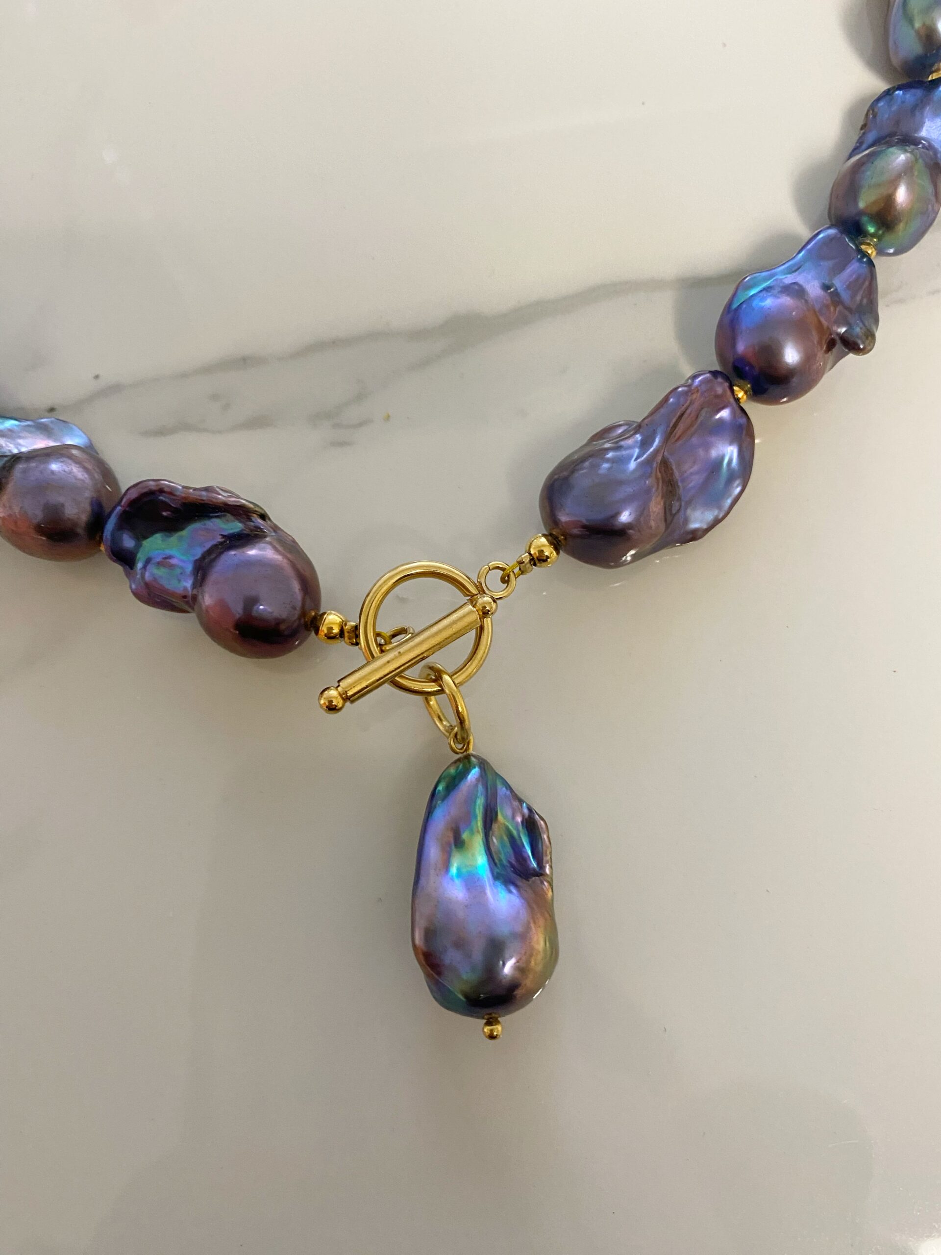 This is one of my most special pieces. It is made of extra large real black baroque pearls . Necklace closures at the front with a toggle bar .